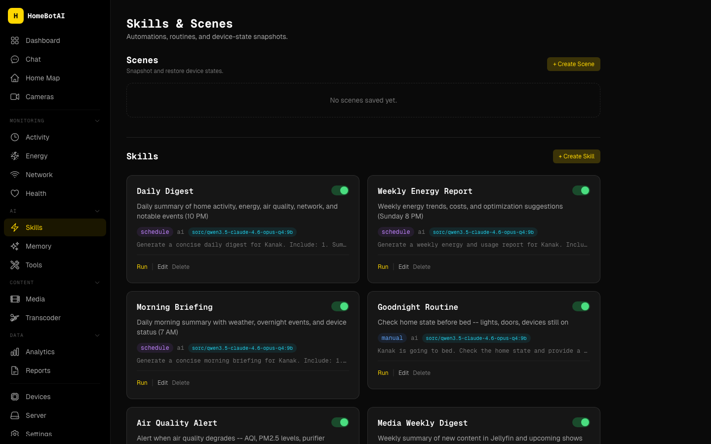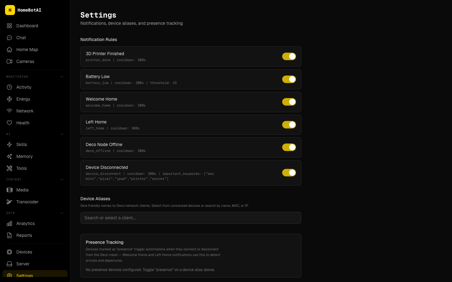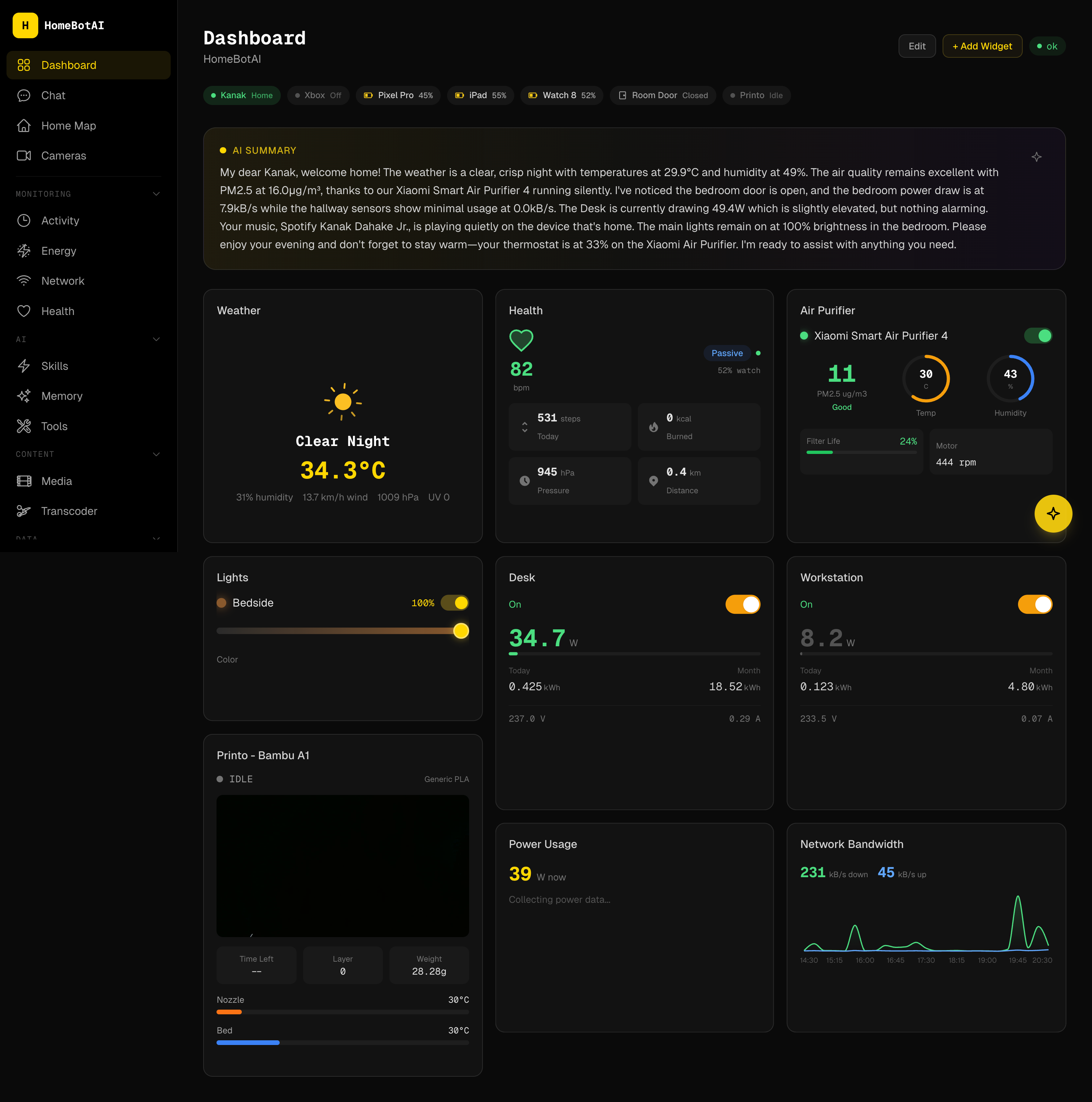 HomeBotAI — one assistant for a home that already runs like a data center, without feeling like one.
