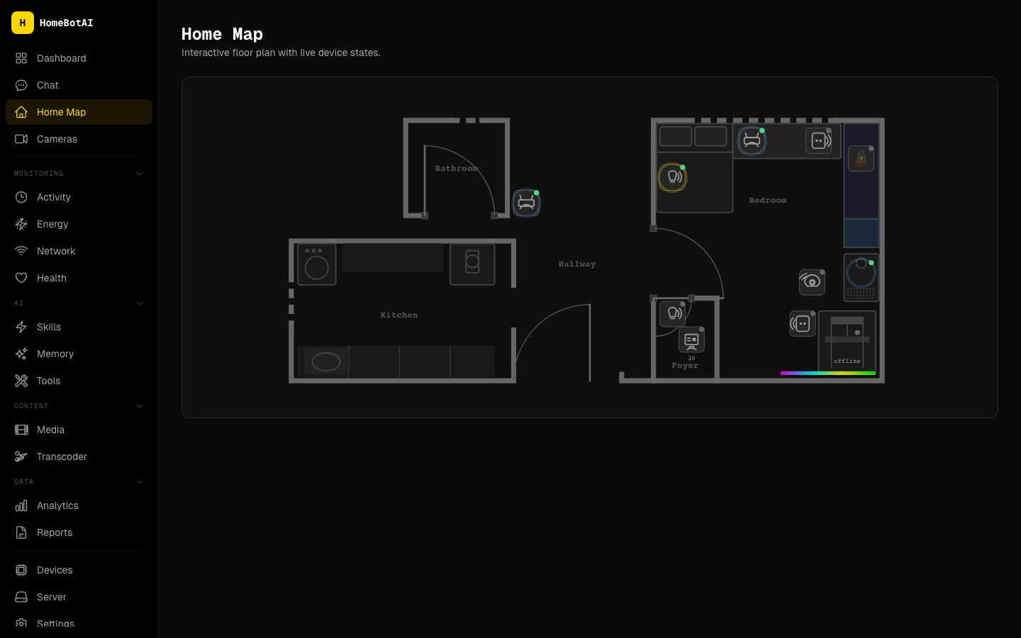 Explore the surfaces HomeBotAI ships today: configurable dashboards, deep integrations, and automation primitives designed for a self-hosted stack.